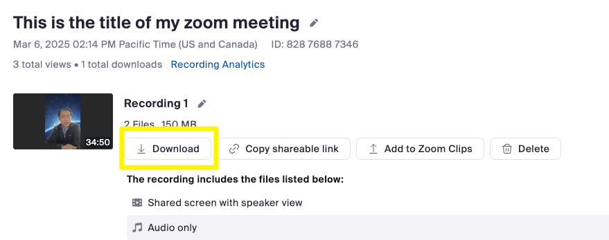 When recording your Zoom meetings to the cloud, you are utilizing a communal storage space. Please save only the recordings you need.