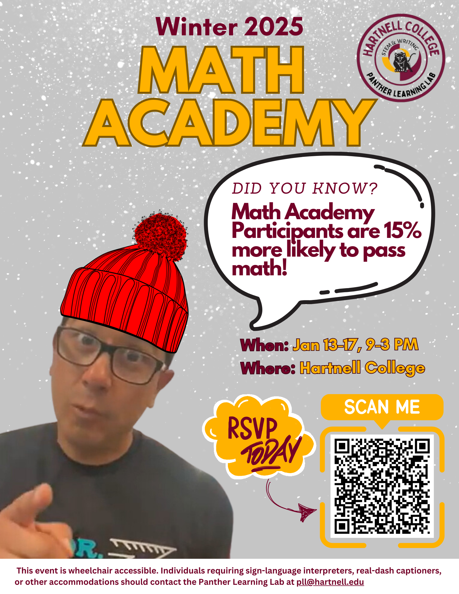 Winter Math Academy runs January 12–16, 9am–3pm.